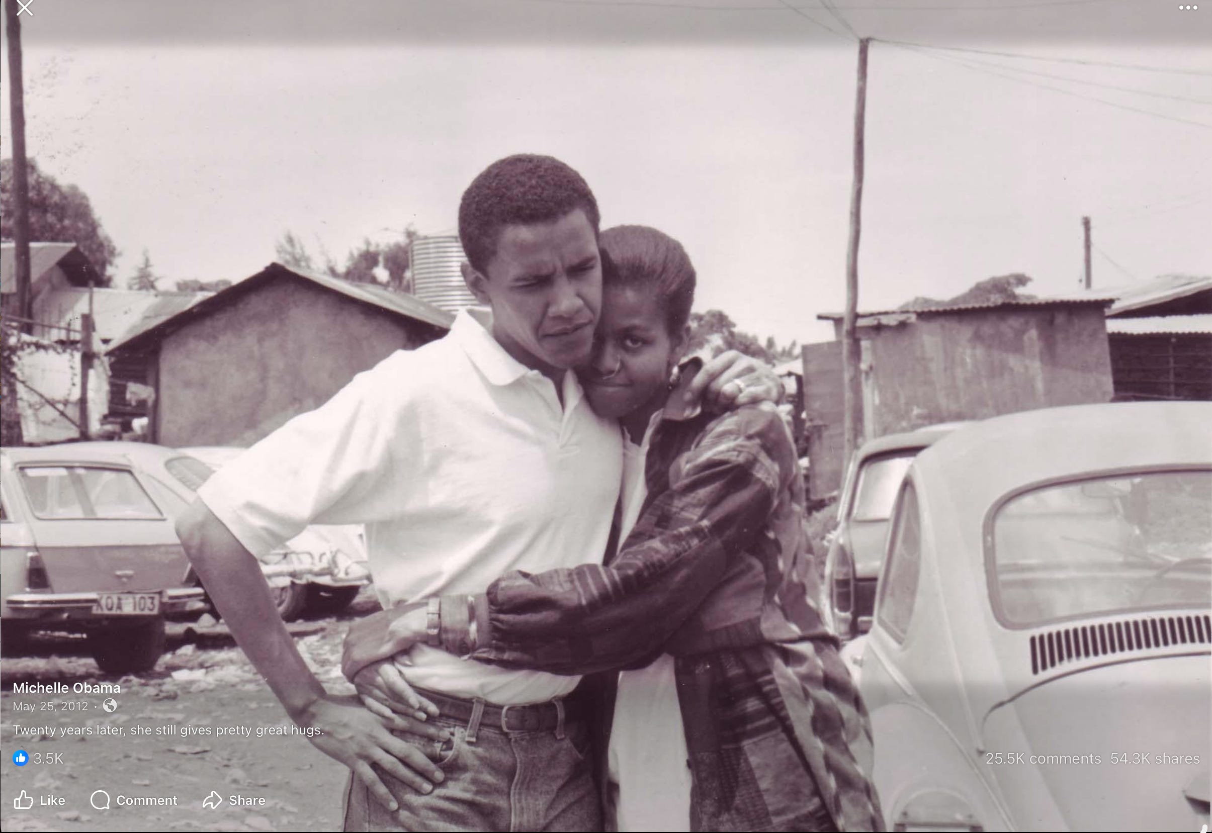 Now look at them here. Barack and Michelle pressed into each other like the world outside might not hold. No flags, no chandeliers, no White House glow. Just two people learning how to make each other shelter.