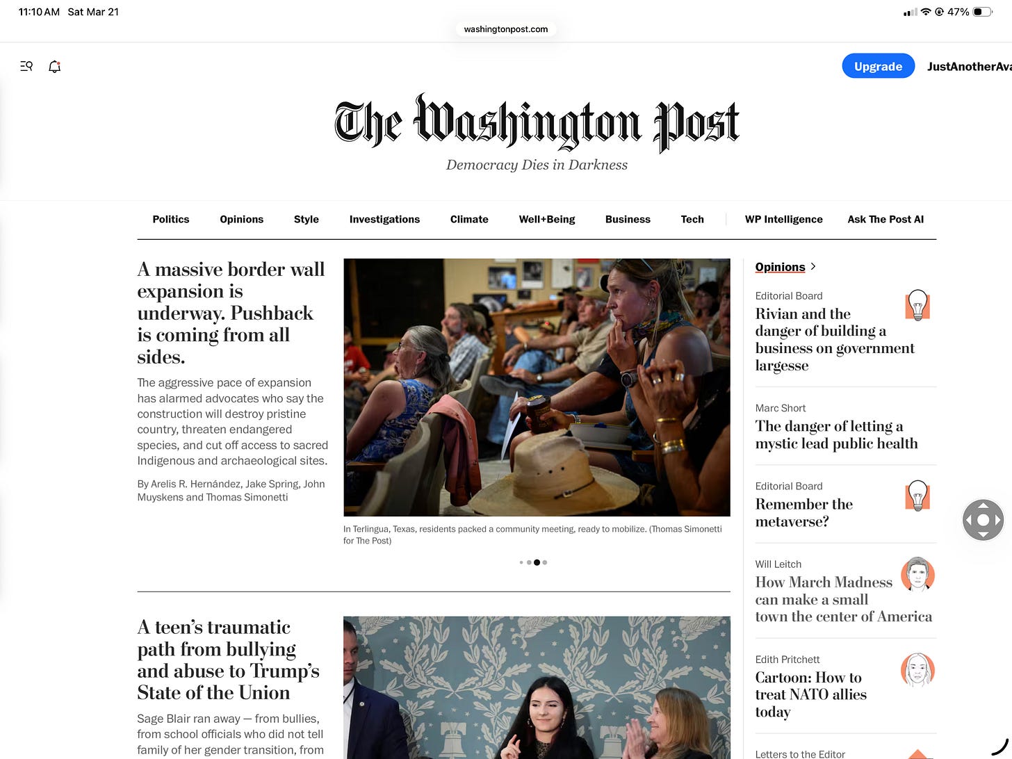 And then came the part that would have made a comedy writer throw their notebook across the room. Over in the opinion rail, the word “war” was sitting there bright and visible in “D.C.’s war on renters,” while the actual war still had to sneak into the house through the side entrance carrying grocery receipts. That is when it stopped feeling like bad judgment and started feeling like parody. The metaphorical war got better placement than the literal one. You almost have to admire the audacity of that bullshit. Almost. [6]