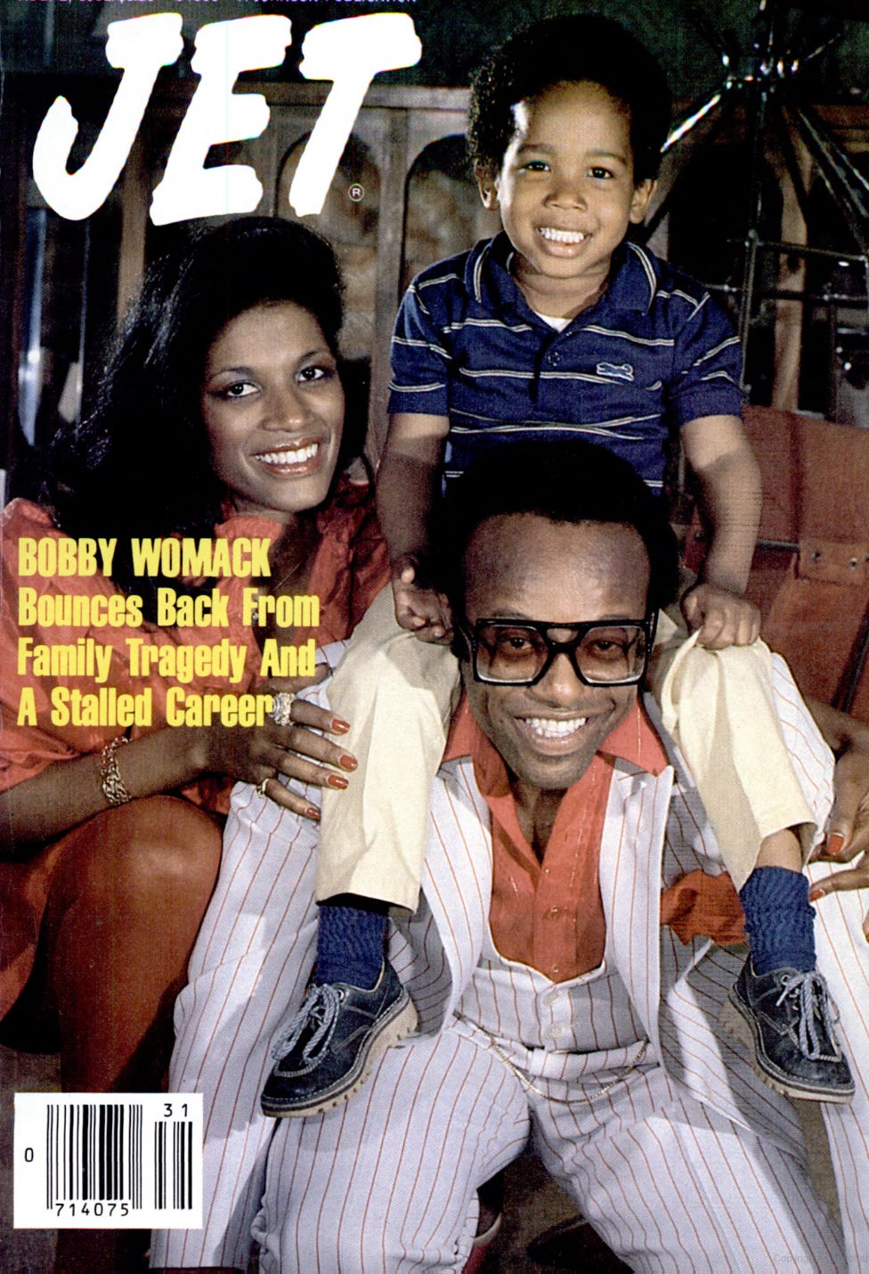 The cover smiles like Sunday. Big glasses, pinstripes, a kid on his shoulders, a woman leaning in. Jet does what Jet does best: joy as evidence. The headline talks about bouncing back from tragedy and a stalled run. The picture says family anyway. You can feel the church in that grin. You can feel the grind in it too.