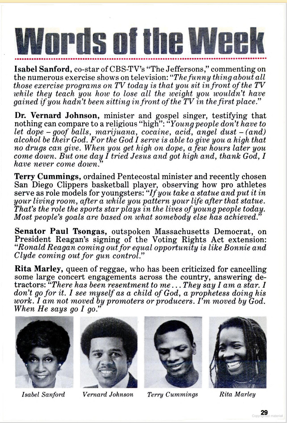 Terry Cummings warns about living by statues and star players. Translation: envy is a schedule. “Her girlfriend’s got…” wasn’t just a line in the song; it was a whole economy of aspiration aimed at houses with shrinking shifts. Senator Tsongas swings in with the cold quip. Reagan signing the Voting Rights Act is “Bonnie and Clyde coming out for gun control.” Cynicism, but it marks the pivot: rights framed as PR while austerity tightens.
