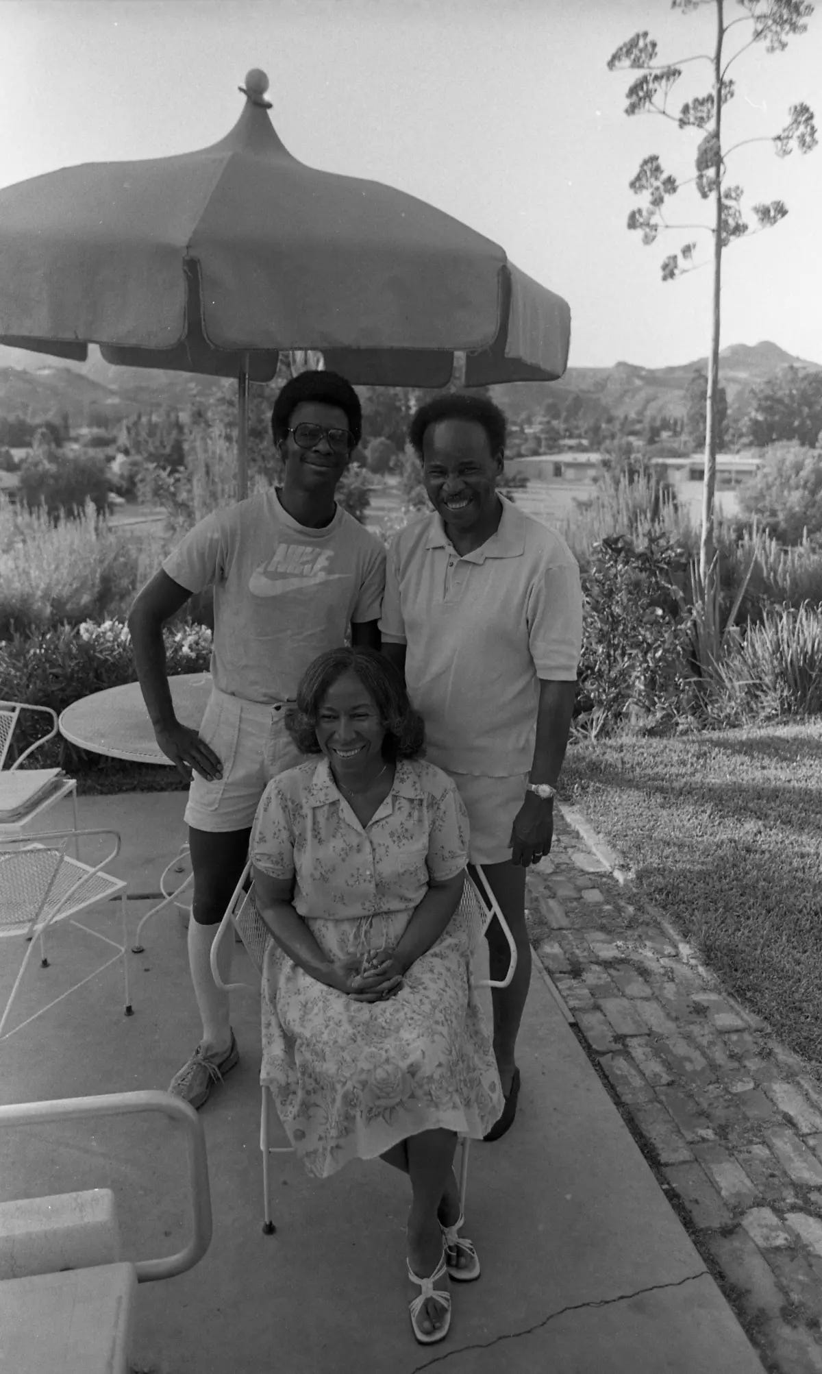 Caption: James Law with his mother, Faye, and father, Edgar, in the backyard of their Granada Hills home. From the 1982 article Black middle class: Getting used to isolation in the LA Times.