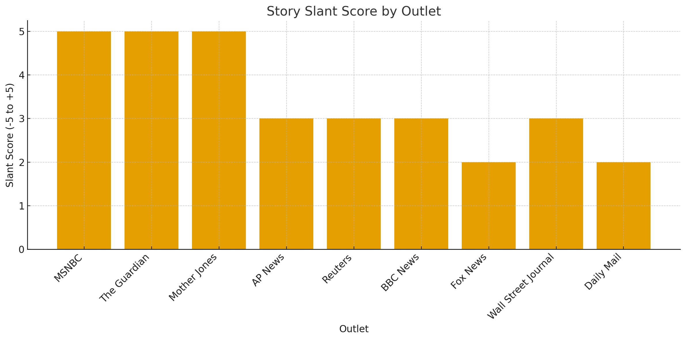 This graphic shows how each outlet leaned in its coverage of Trump’s “garbage” comment, from strongly critical (closer to –5) to more supportive or minimizing (closer to +5). It doesn’t measure “truth,” it measures tone: how the story felt if you only lived in that outlet’s world. Seeing the scores side by side makes it easier to spot which coverage was sounding the alarm and which was riding the brakes.