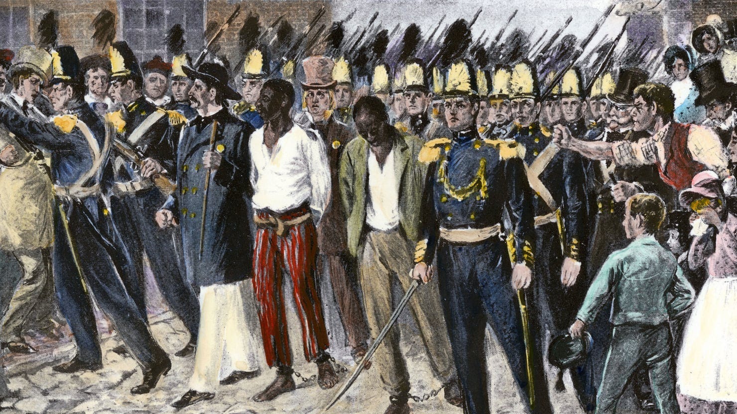 Anthony Burns was a 20-year-old enslaved man who escaped from Virginia to Boston. In May 1854, federal marshals arrested him under the Fugitive Slave Act to return him to his enslaver, and the city erupted into a showdown between federal authority and local resistance. [45, 46]