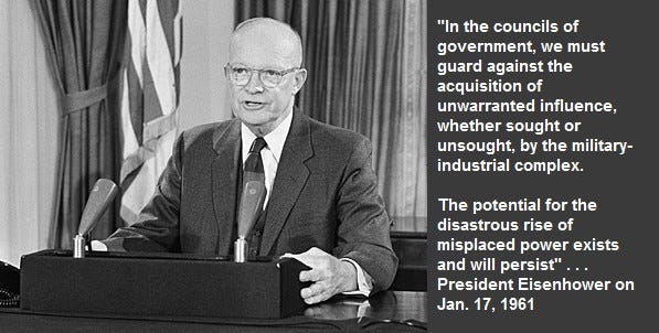 Why do these quagmires keep happening with such predictability? Part of the answer lies in what President Dwight D. Eisenhower famously dubbed the “military–industrial complex.”In 1961, Eisenhower warned that a powerful nexus of defense contractors, military leaders, and politicians could drive perpetual war for profit and power . He noted the “total influence—economic, political, even spiritual” of this alliance is felt throughout the halls of government .