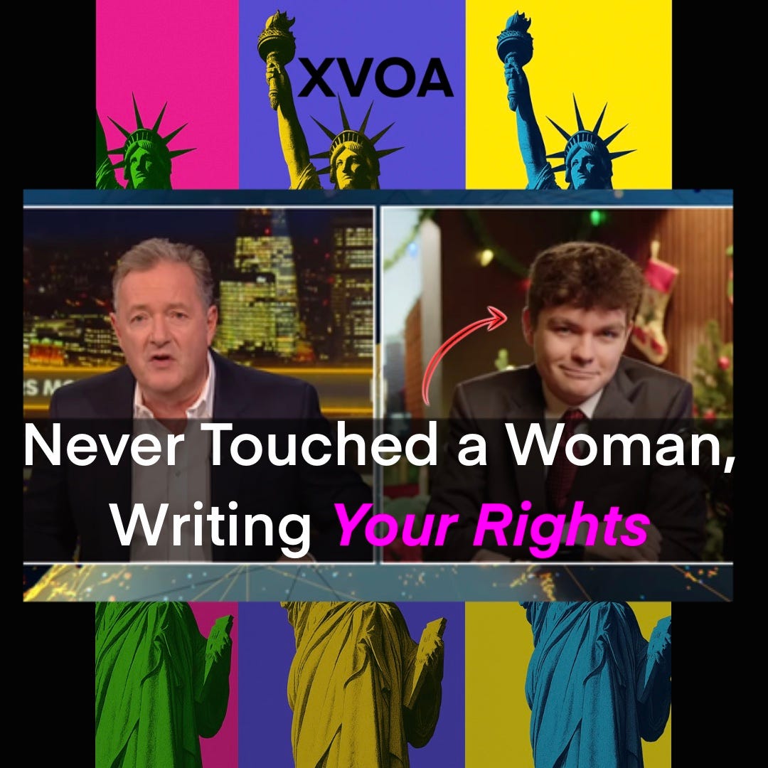 Let me introduce you to a man, Nick Fuentes, who has never touched a woman but feels fully qualified to decide what happens inside every woman’s body. On live TV, he calmly told Piers Morgan he’s never had sex, never dated, never had to sit across from a woman he hurt and say, “I’m sorry.” What he has done is build an entire theology of womanhood from porn, message boards, and other angry men, then package it as “traditional values” for boys who’ve never even had the courage to ask someone out for coffee.