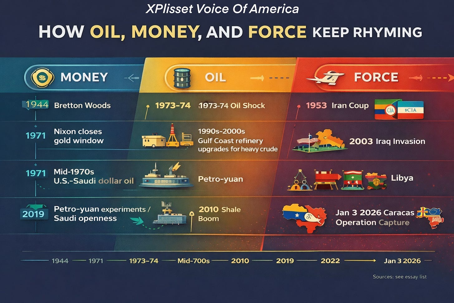 What follows is a critical analysis of that claim. We compare Venezuela’s case with key historical precedents: Iran’s Mossadegh (1953), Iraq (2003), and Libya (2011). We also incorporate the technical oil-market dynamics that tend to get lost in currency-only debates (including the refinery mismatch and the strategic value of the Orinoco Belt). [8] The goal is simple: test the petrodollar theory as a framework, where it holds, where it overreaches, and what the evidence can actually support.