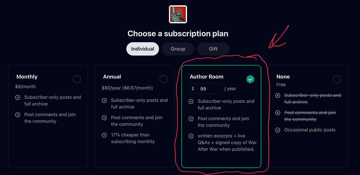 The Author Room itself is open to everyone, but the direct-excerpt section will be paywalled, so paid members get the draft pages, rewrites, and the behind-the-scenes choices that turn history into narrative.